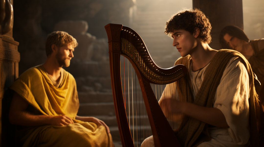 Father, the King is a man in torment. Once, they say, he was a vessel filled with God’s Spirit [2], brimming with wisdom and valor. But now? An empty vessel, haunted by a spirit not of God [3]. When this spirit seizes him, his eyes darken like a stormy sky, and his soul trembles like a leaf in the wind. It is then that my fingers dance upon the harp’s strings, and its melodies become a balm to his restless spirit.